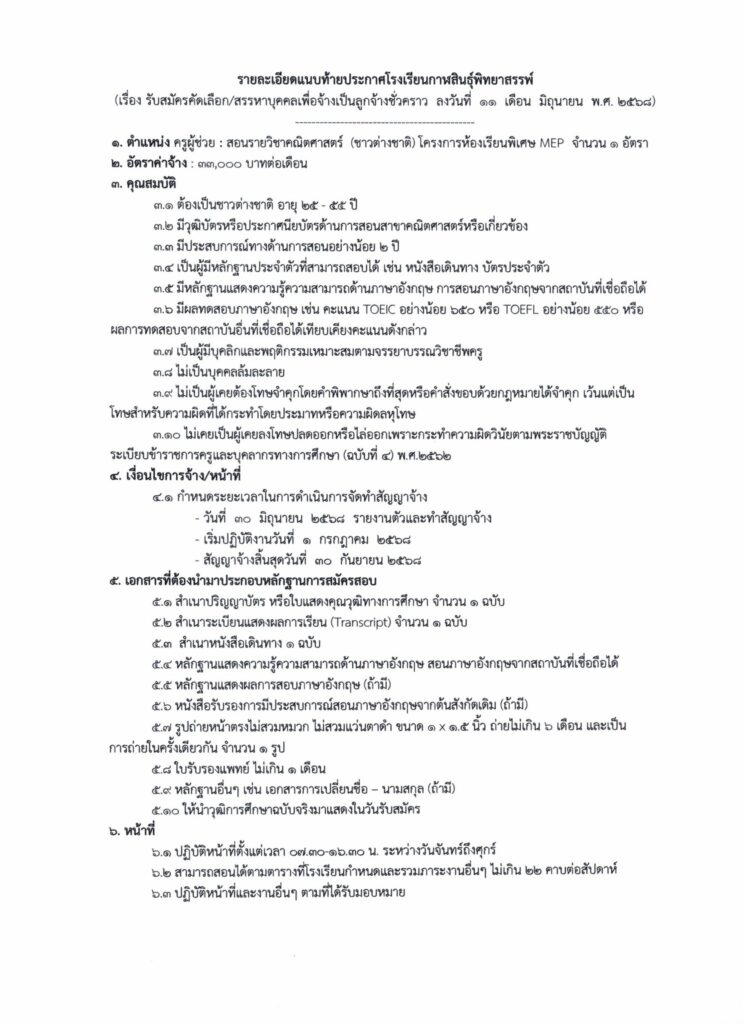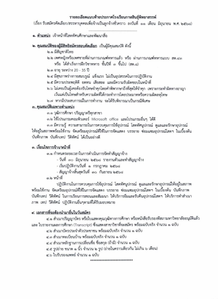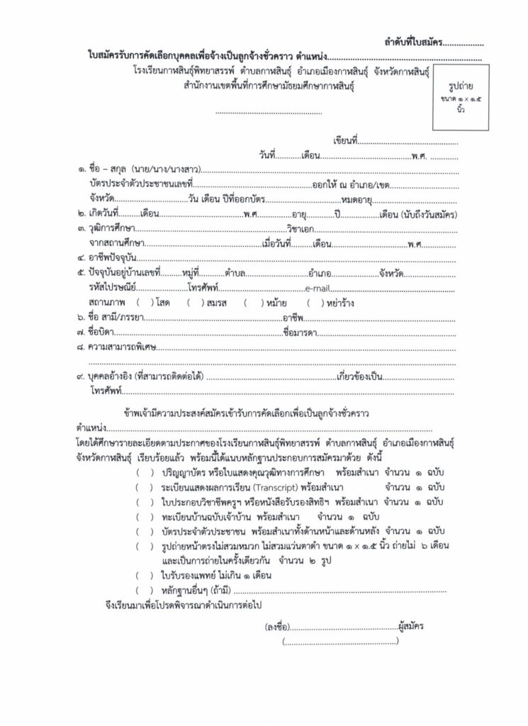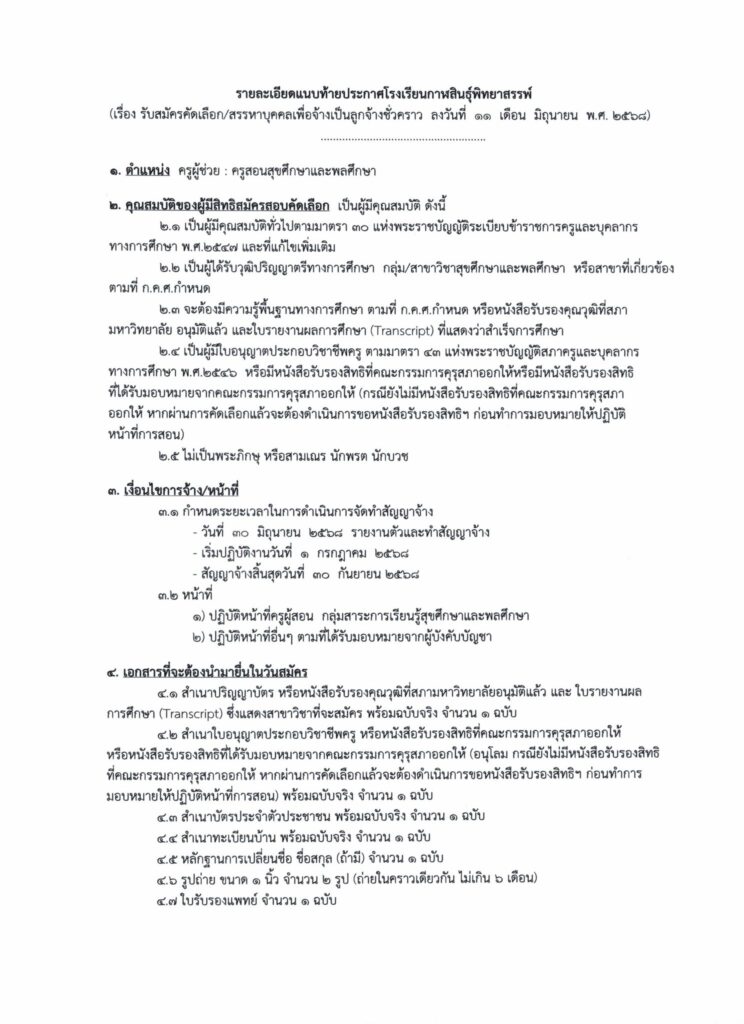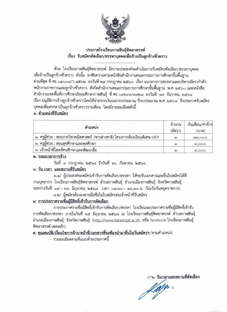 ประกาศโรงเรียนกาฬสินธุ์พิทยาสรรพ์ เรื่อง รับสมัครคัดเลือก/สรรหาบุคคลเพื่อจ้างเป็นลูกจ้างชั่วคราว