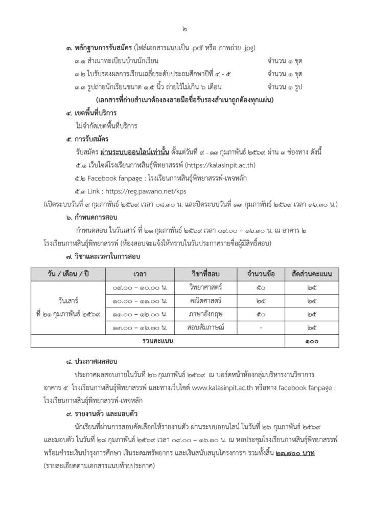 ประกาศโรงเรียนกาฬสินธุ์พิทยาสรรพ์ #รับสมัครนักเรียนโครงการห้องเรียนพิเศษ ชั้นมัธยมศึกษาปีที่ 1 ปีการศึกษา 2569 #ผ่านระบบออนไลน์ เท่านั้น !!