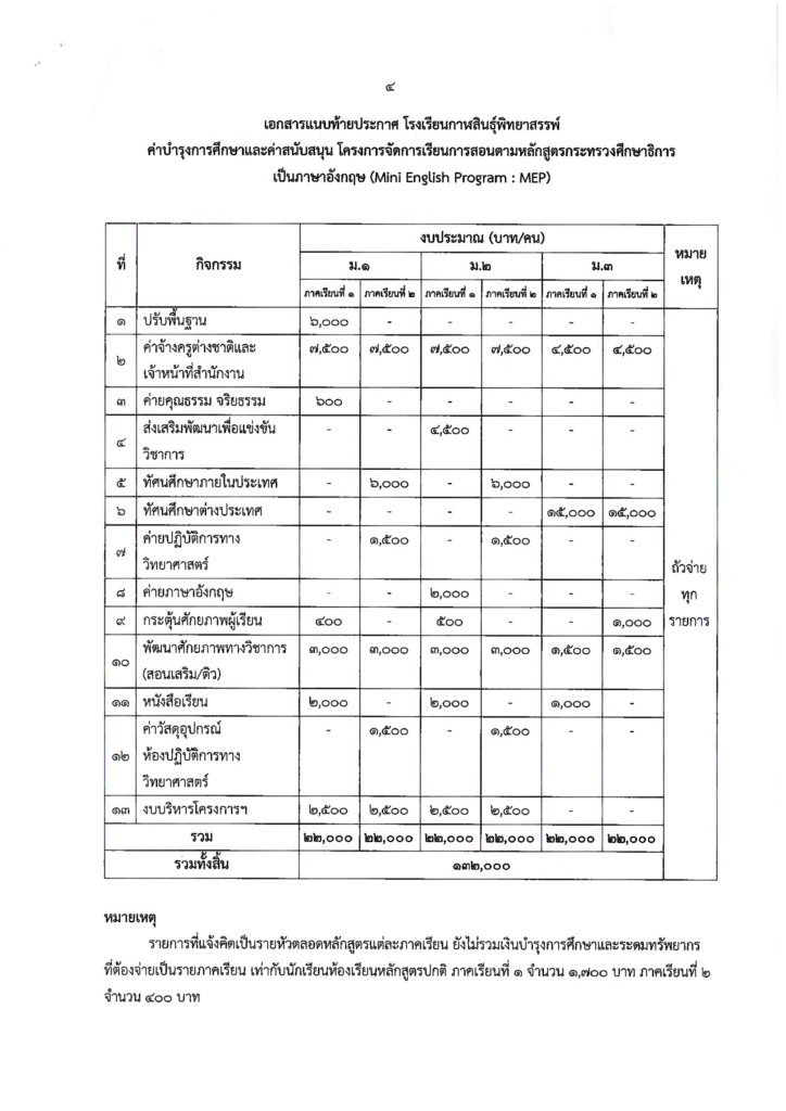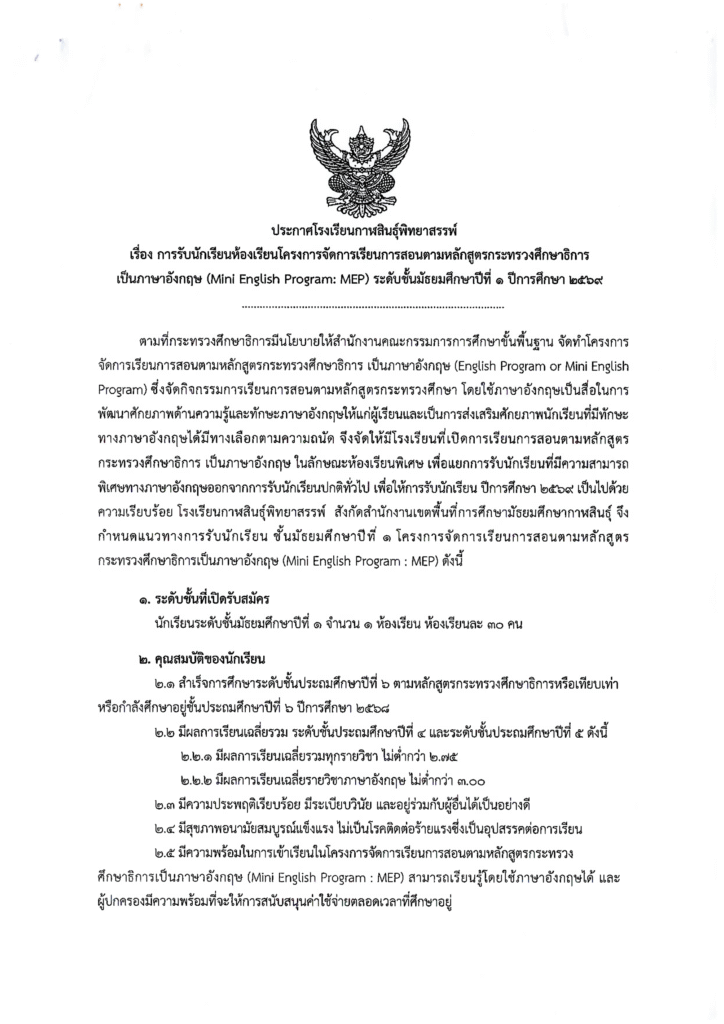 ประกาศโรงเรียนกาฬสินธุ์พิทยาสรรพ์ เรื่อง รับสมัครนักเรียนโครงการห้องเรียนพิเศษ MEP ชั้นมัธยมศึกษาปีที่ 1 ปีการศึกษา 2569
