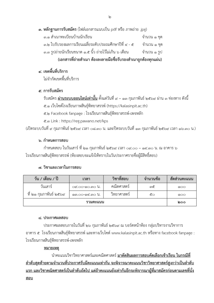 ประกาศโรงเรียนกาฬสินธุ์พิทยาสรรพ์ #รับสมัครนักเรียนโครงการห้องเรียนพิเศษ ชั้นมัธยมศึกษาปีที่ 1 ปีการศึกษา 2569 #ผ่านระบบออนไลน์ เท่านั้น !!