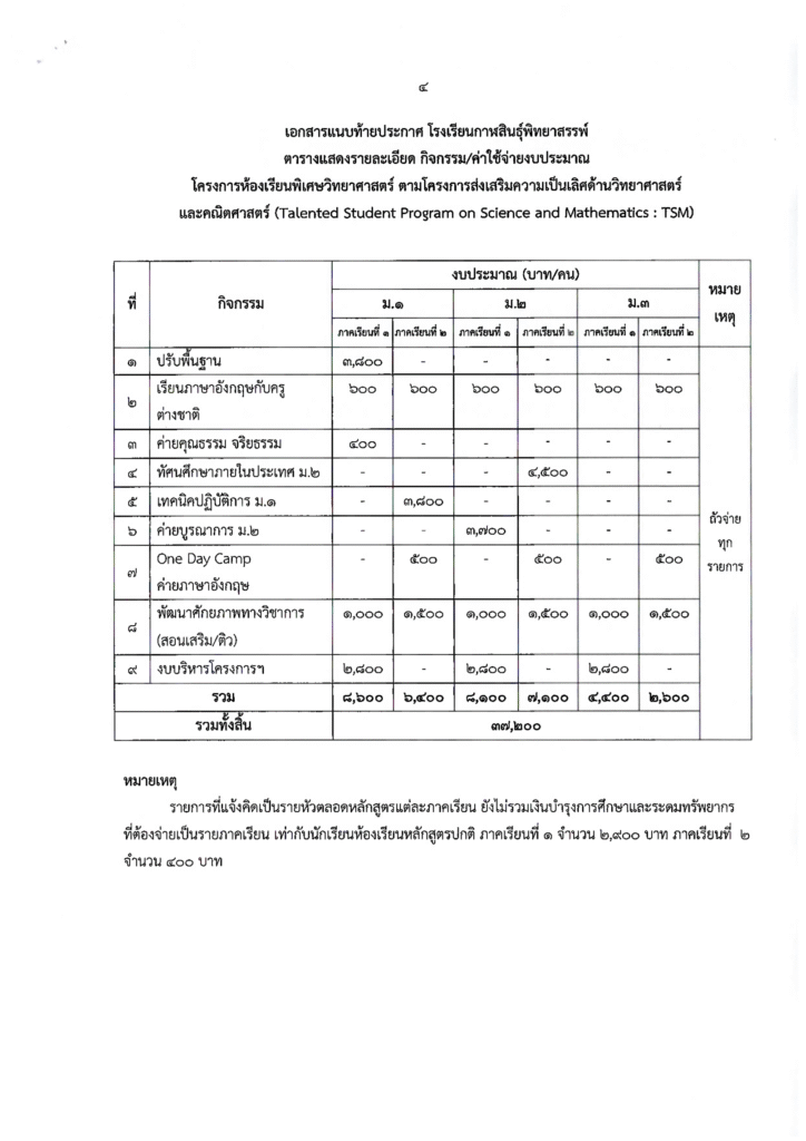 ประกาศโรงเรียนกาฬสินธุ์พิทยาสรรพ์ เรื่อง รับสมัครนักเรียนโครงการห้องเรียนพิเศษ TSM ชั้นมัธยมศึกษาปีที่ 1 ปีการศึกษา 2569