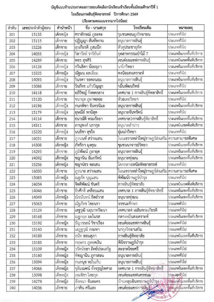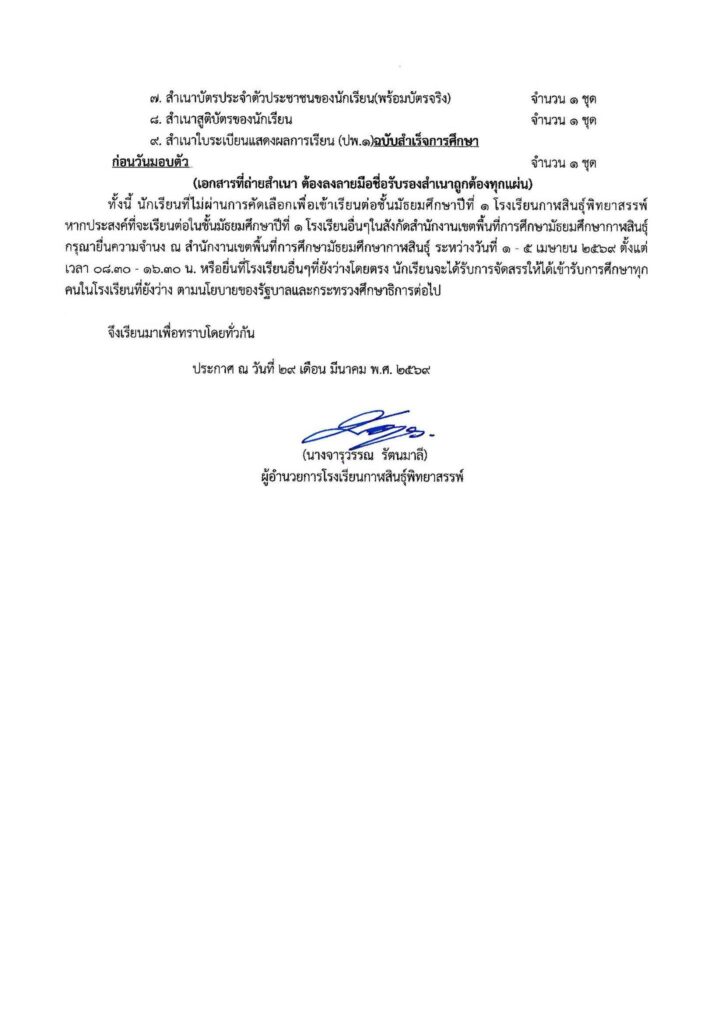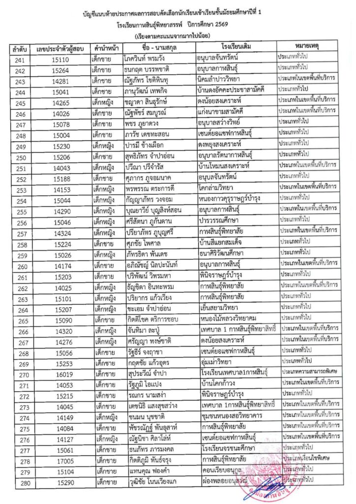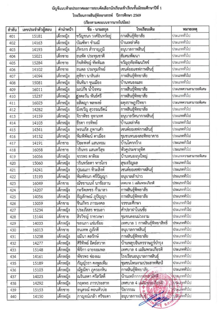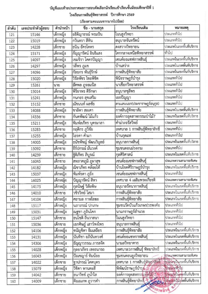 #ให้นักเรียนในลำดับที่ 1 – 520 (ตัวจริง) มอบตัวในวันที่ 4 เมษายน 2569 เวลา 08.30 – 16.30 น. ณ โรงเรียนกาฬสินธุ์พิทยาสรรพ์ #หากไม่มามอบตัวตามวันและเวลาที่กำหนดถือว่าสละสิทธิ์ ทางโรงเรียนจะดำเนินการเรียกตัวสำรองต่อไป